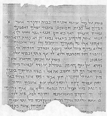 The 1st word of this verse: 3rd or 4th word from the end of the 5th line from the bottom: "halo' " It is an interrogative "he" and negative "lo' " with added semivowel waw. The next word is partly abraded and the ayin is missing. The word may not have ended with ayin as it does in M because the next letters are not in M and may be a plural ending to this adverb. It is not unknown in Hebrew to have plural endings on adverbs. The 1st word on the next line is also obscured but enough is present to identify it with the word following in M in this order. This is not a commentary but I will offer an explanation here. The word is "ve-noshkeka" Q scribes usually add a he to the 2ms suf but not here. The word is a mas. pl. part. meaning the ones putting the bite on you. It is not a play on words but an ironic twist on what has gone before. The word means bite and secondarily "to put the bite on" as to obtain high interest on a loan. Thus revenge will be sought for laying heavy tribute on their captives mentioned in the preceding verse. Thus this would confirm that "debtors" is meant in the last verse and not "clay." Waw is added 2 times to the next word both as semivowels. The next word (3rd) "meza'ze'ekah" is a part. with 2ms suf meaning "your trembling" which has an added waw as a vowel, in this case neither o nor u but sheva. Waw is used by Q scribes as a semivowel to represent any vowel sound. See the Qa Introduction. Follow the link there to a discussion on Sinim and then Hezekiah's spelling. In the same word "meza'ze'ekah" notice that the he is added to 2ms suf which was not done to the first word in this line. The next word "ve-hayitha" cj + pf 3fs (to be) is the same word with a different spelling.