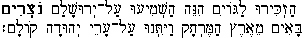 (hazkiyru la-goyim hineh hashmi'yu 'al yerushalam notsriym ba'iym me'erets ha-merchoq va-yitnu 'al 'arey yehudah qolam)