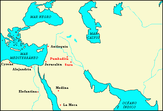 Translation: The honorific title was given to the Presidents of the Jewish Talmudic-Torah Academies in Babylon which were successors of the "Saboraim." The Gaoniym interpreted the Talmud and made legal decisions in business and in purely religious areas. The First of the Gaons was Ray Hana of Ushkiya from the Pumbidita Yeshiva. During 499 years 48 Gaons followed in Pumbidita until the year 4798 until the last Gaon Rav Hay. In the Yeshiva at Sura 36 Gaons succeeded from the year 4369 until 4703. Spanish history