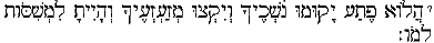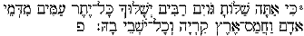 There are 9 words of this verse beginning with the 1st word on the next to last line going to the end of that line. These same words are repeated again on the next page on line 3 and 4 (page 9) and the rest of the verse is completed on lines 7 and 8 of the next page. Thus this verse evoked a great deal of comment. One variant worth mentioning between P and M is the addition of he to open syllables to show that there is a final syllable on 2ms sufs and not a consonantal sound. This can be seen in the 3rd word a 2ms verb and in the 6th word adding he to a 2ms suf to make certain the open syllable. Concerning translation. KJV translators should not have used the word "remnant" but rather "the rest of" as the word remnant is most often a reference to the faithful who will survive in Zion. The word is "yether" here and remnant is "she'ar" not found in this context. "Kiy" appears to be written without the aleph in the first word in the line. This is also the case in the repeated script of the verse line 3 of page 9, which see.